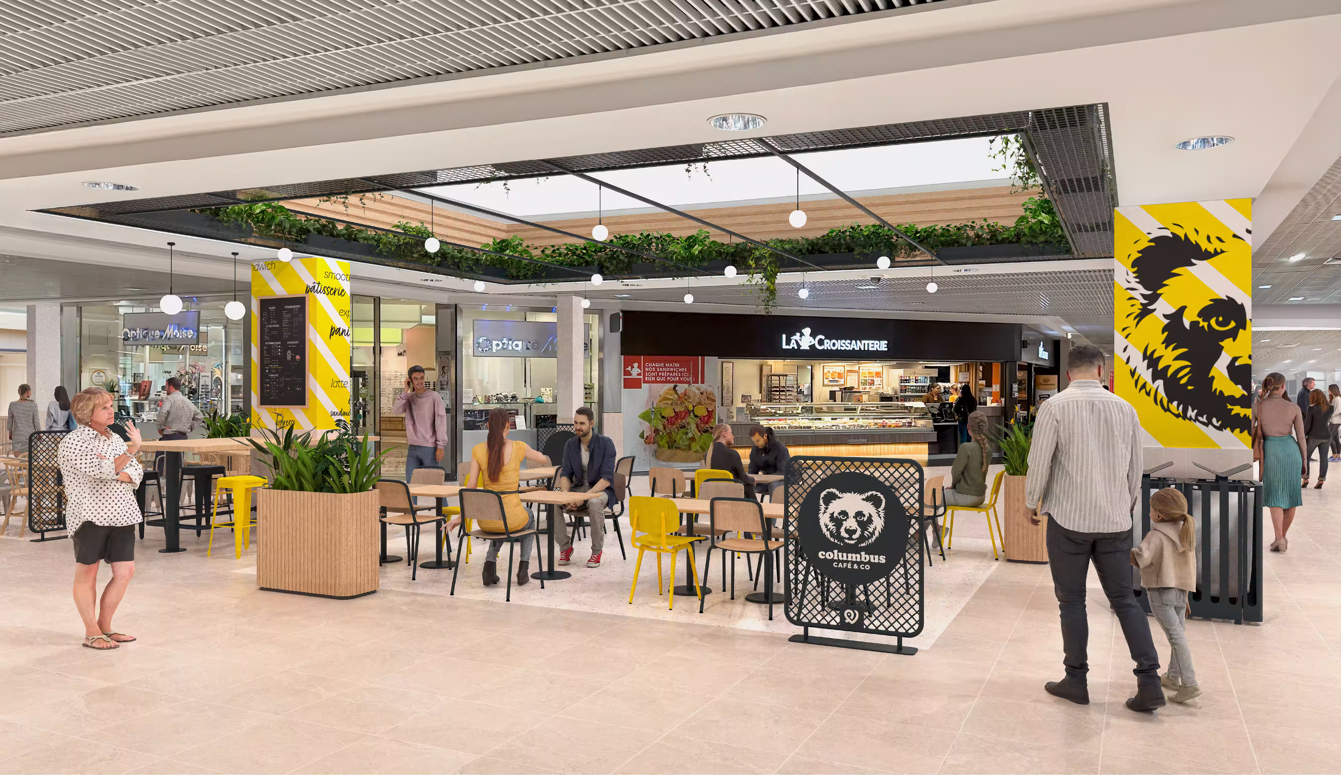 Un concept global qui incarne la nouvelle promesse des lieux : des espaces hybrides, multi-ancrages, qui allient commerce alimentaire, shopping, divertissement et service. Une identité visuelle puissante, pensée comme un repère et fédérant tous les actifs. Un parcours client optimisé grâce à un concept signalétique efficace et un design global chaleureux et dynamique.